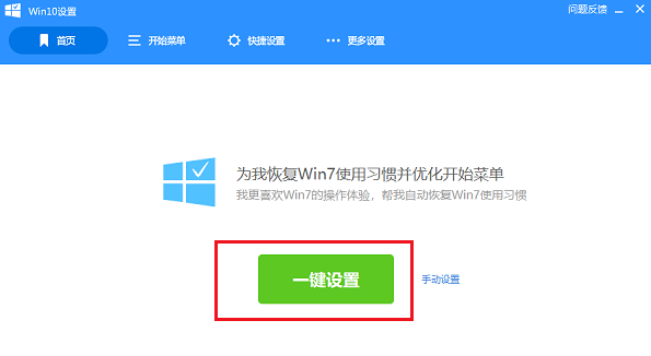 进去 Win 10 设置界面,可以进行一键设置,将 Win 10 开始菜单设置成 Win 7 风格的,如下图所示: