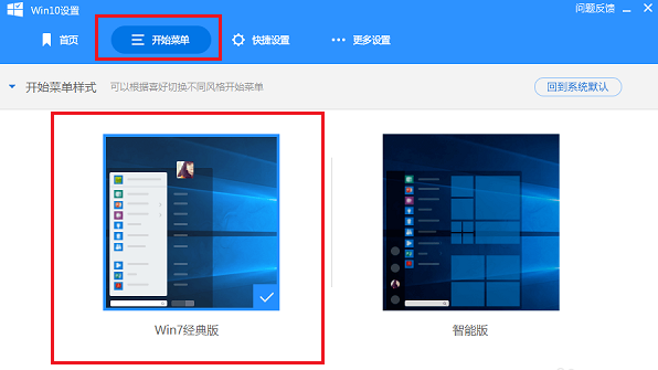 我们也可以点击开始菜单,勾选“ Win 7 经典版”,如下图所示: