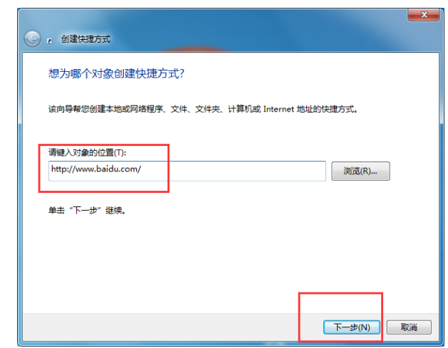 3. 之后将刚才复制的网址粘贴到快捷方式中就可以了。