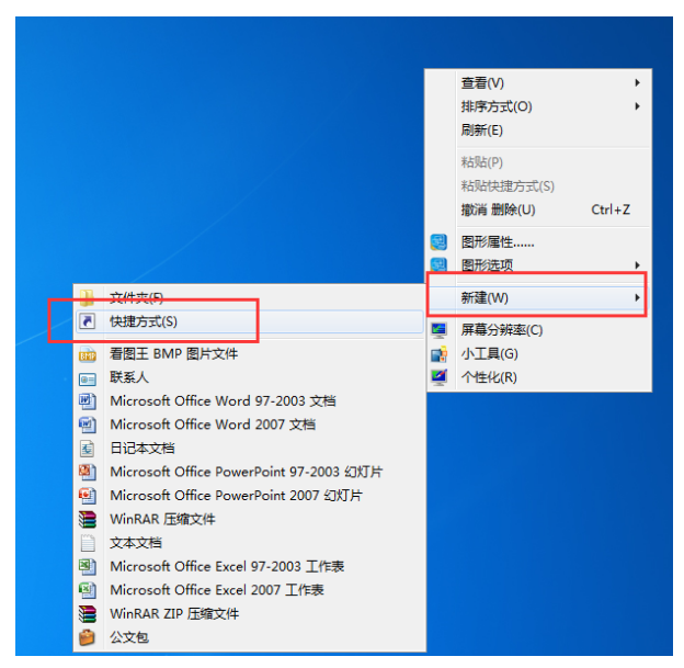 2. 接着我们来到桌面,点击鼠标右键创建一个快捷方式,如下图所示: