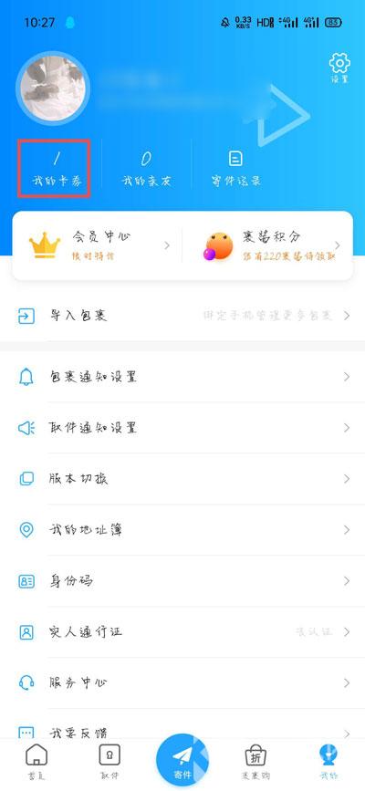 6. 接着就能看到我们刚刚领取到的 10 元寄件券啦;