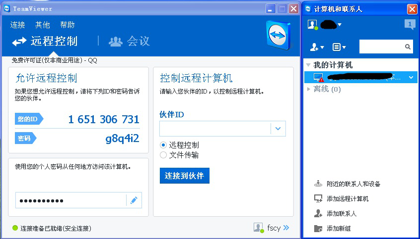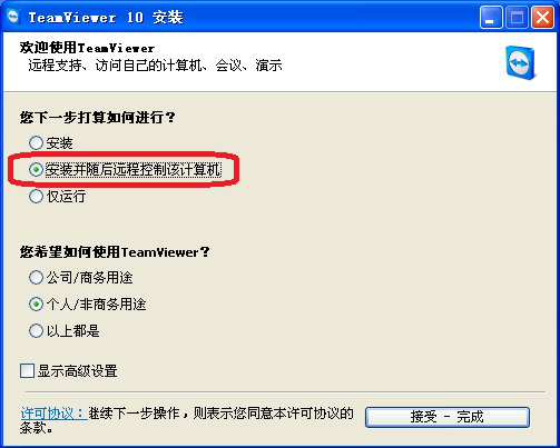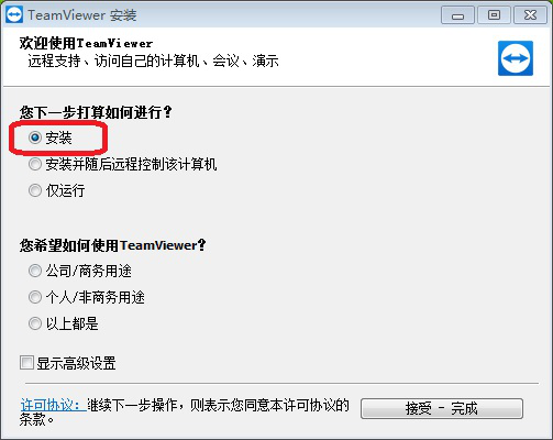 1. 首先分别在主机和客机上安装 TeamViewer 软件。需要注意的是: