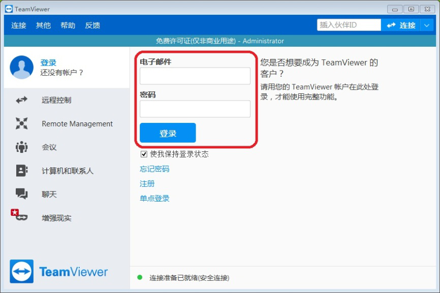 1. 打开主机上 TeamViewer 软件并登陆,如图。