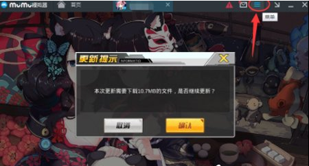 2. 运行游戏后会打开一个MuMu模拟器的窗口,在这个窗口的右上角找到"菜单"按钮。