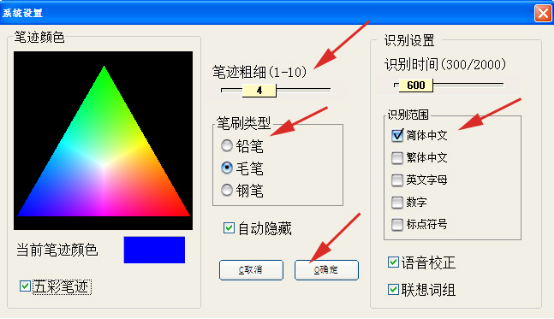 6. 运行后,用户可以在点将王手写板的界面,对笔记粗细. 字体语言. 笔的类型等进行设置。