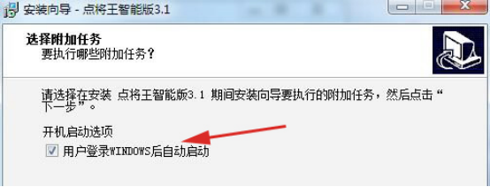 4. 在点将王手写板安装向导的“选择附加任务”,如果用户使用点将王手写板的频率高的话,建议勾选“用户登录WINDOWS后自动启动”的选项。