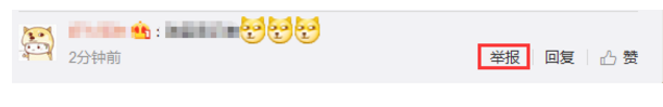 当鼠标放在单条评论上会出现"举报"按钮,直接点击即可完成举报;