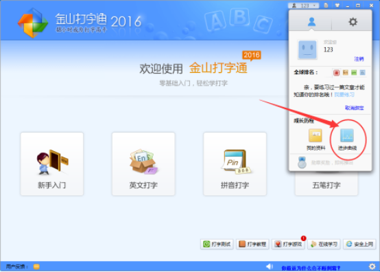 4. 在登录界面点击"进步曲线";