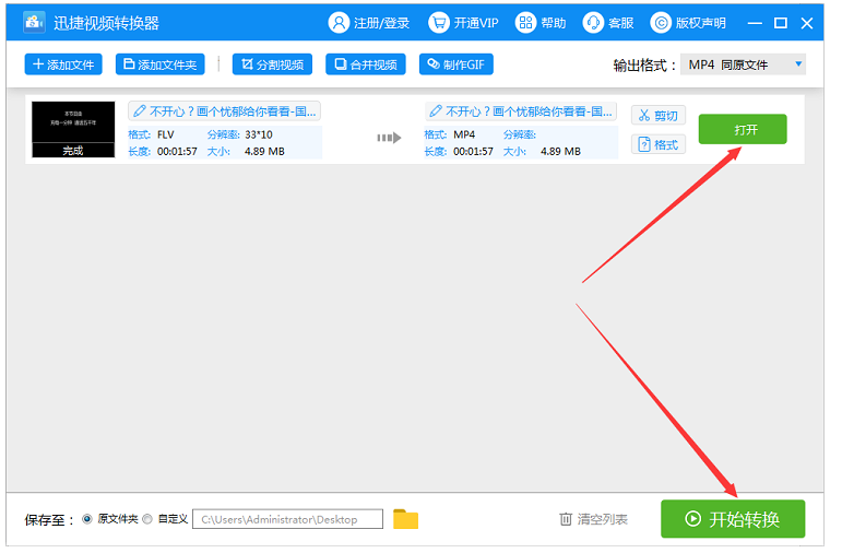 设置完成,最后点击"开始转换",软件即会自动进行格式转换,转换完成,点击打开按钮,即可查看视频文件。