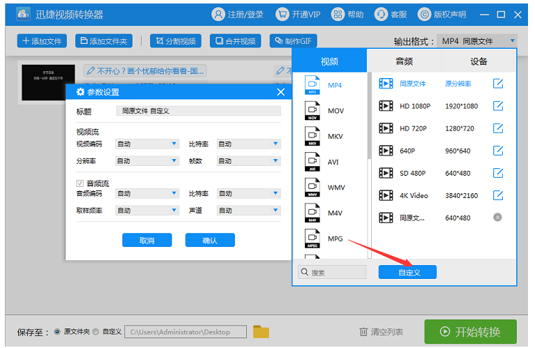如果你想要设置其他参数,点击"自定义"按钮,即可进行设置,