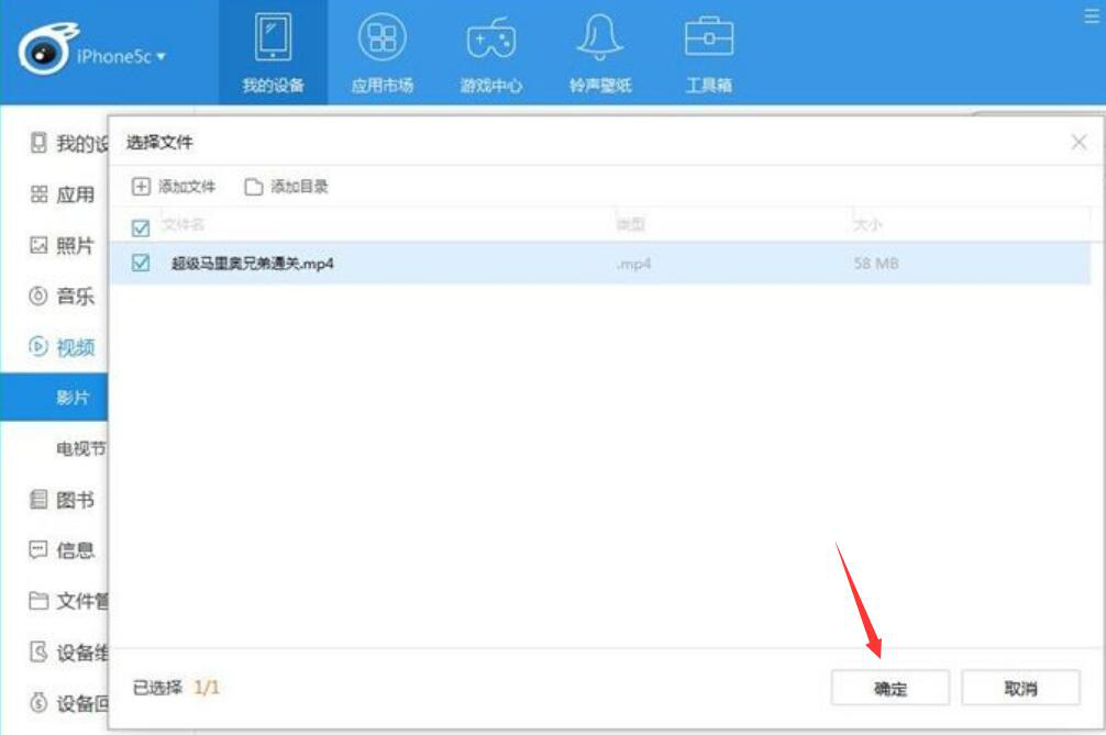 2. 然后, itools 会弹出如下图的窗口。用户勾选该视频,并点击右下方的"确定"按钮。