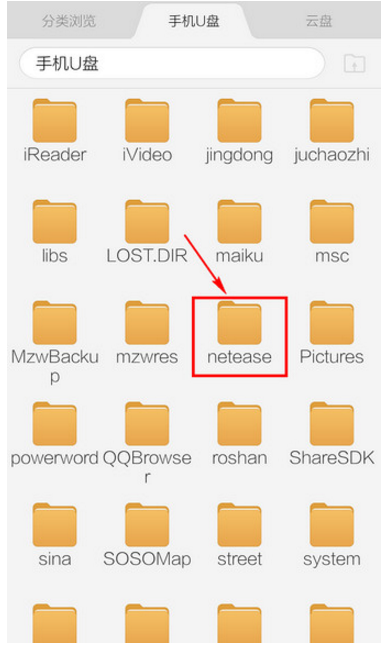 5. 打开手机的”文件夹/文件管理器”,找到”netease”文件夹,