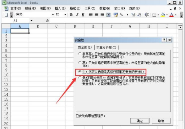 6. 点击安全级别选项,在将安全级别设置为中,这样我们的问题就解决了,如图所示: