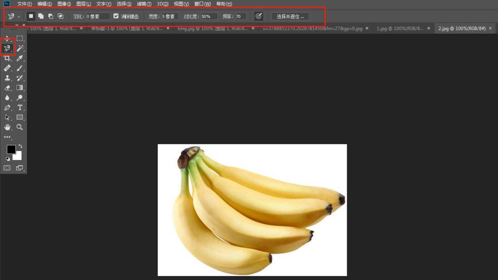 此时香蕉内部还有白色背景,我们可以选择“从选区减去”,减去白色背景,