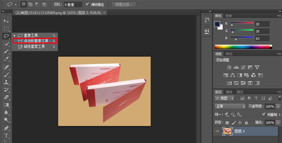 将素材图片导入到 PS 软件中,在工具栏中选择“套索工具组”中的“多边形套索工具”,