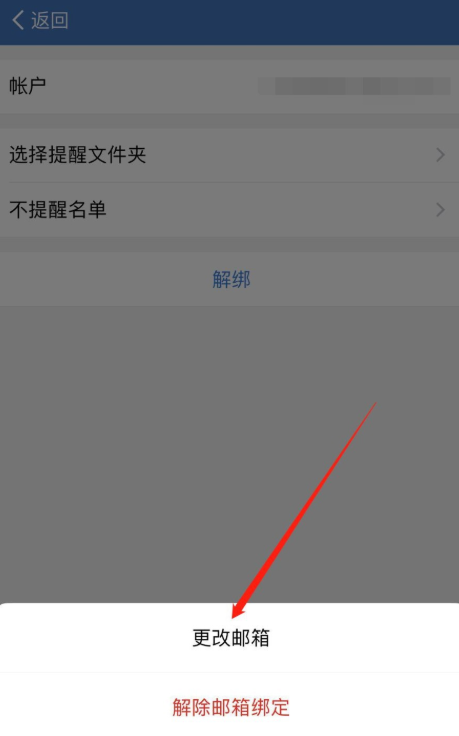 弹出菜单选项,点击”解除邮箱绑定”,出现提示,点击解绑即可。