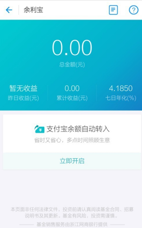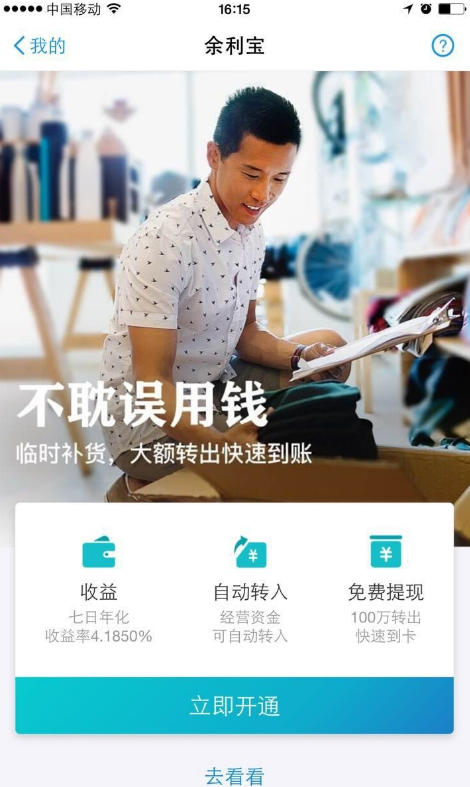 2. 找到余利宝点击开通,按照提示步骤依次进行