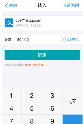 4. 我们开通之后就可以把余额宝或者支付宝账号的余额转入余利宝了,