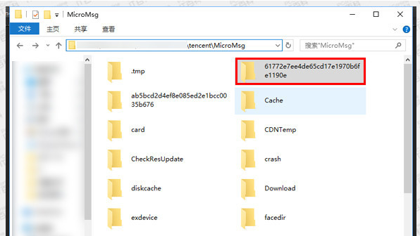 1. 将手机连接电脑,并打开微信聊天记录的储存位置。微信聊天记录目录路径为 \\tencent\\MicroMsg\\ 一长串字符的文件夹(微信账户)。