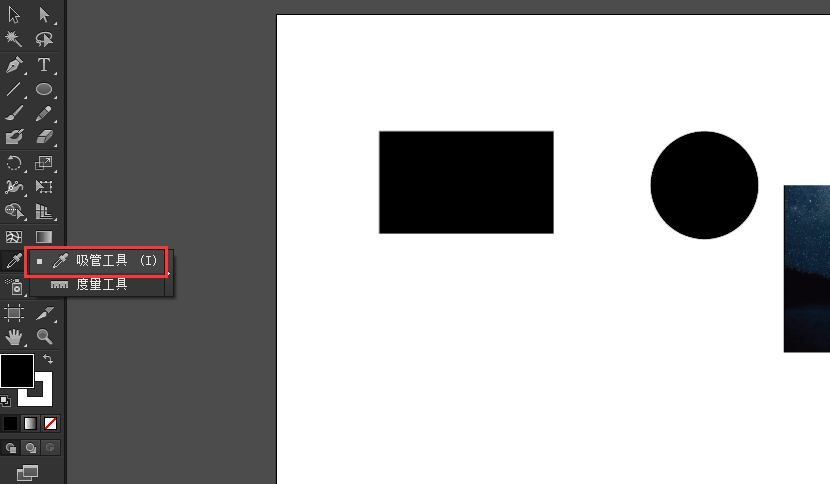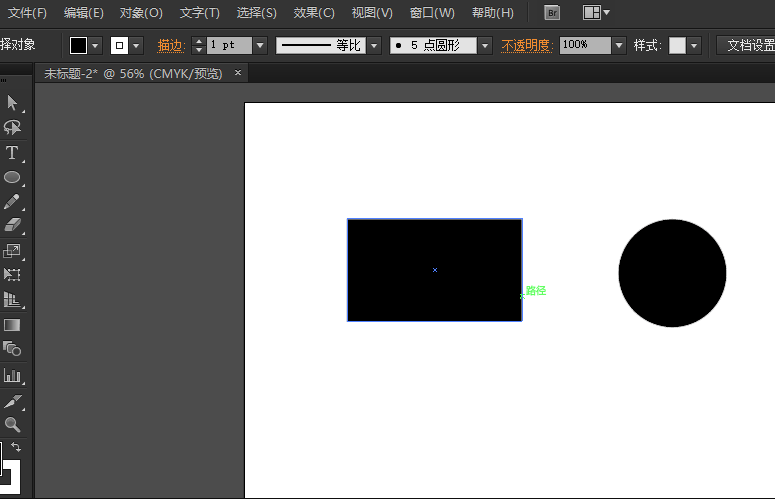 打开 Adobe Illustrator 软件,新建一个空白文档,用矩形工具和椭圆形工具分别画一个矩形和圆形。