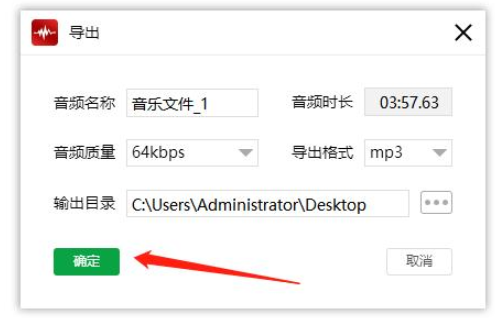 降噪完成,点击播放按钮,预览音频效果,确人满意,点击“导出”,设置音频文件名称、格式以及保存路径,最后点击确定,