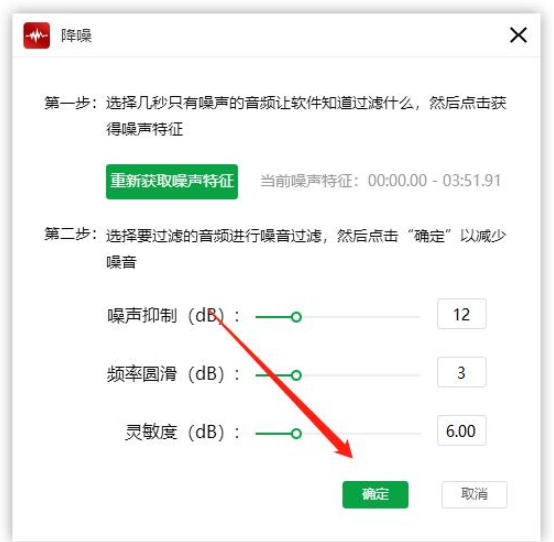 接下来,选择需要过滤的音频( Ctr + A 可全选),再次点击“降噪”功能,