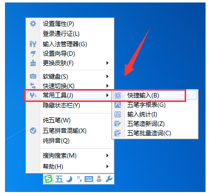 4. 此外,我们还可以在“菜单”的“常用工具”中打开“快速输入”;
