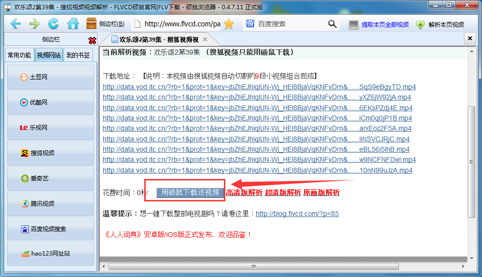 3. 接着在打开的新页面中点击“使用硕鼠下载该视频”;