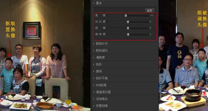 8. 进行“换头”操作,头像大小可变,以适应被替换图像的大小,然后鼠标直接拖过去覆盖即可。