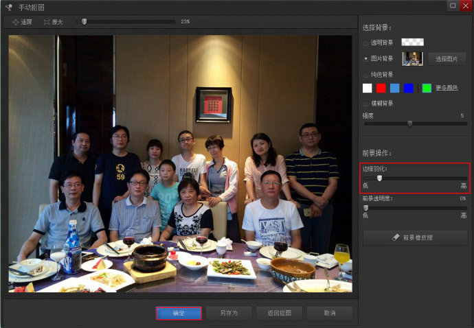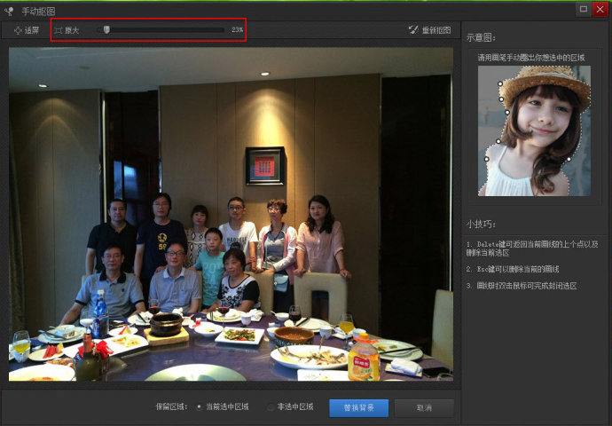3. 为了便于抠图,可把照片拉大,见下图红框内的滑条。