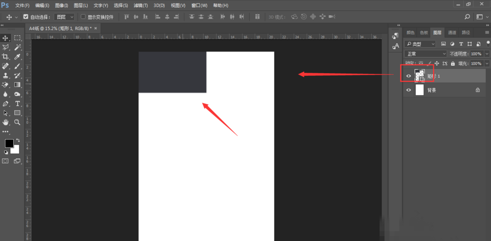 使用移动工具,将矩形移动到左上方确定。
