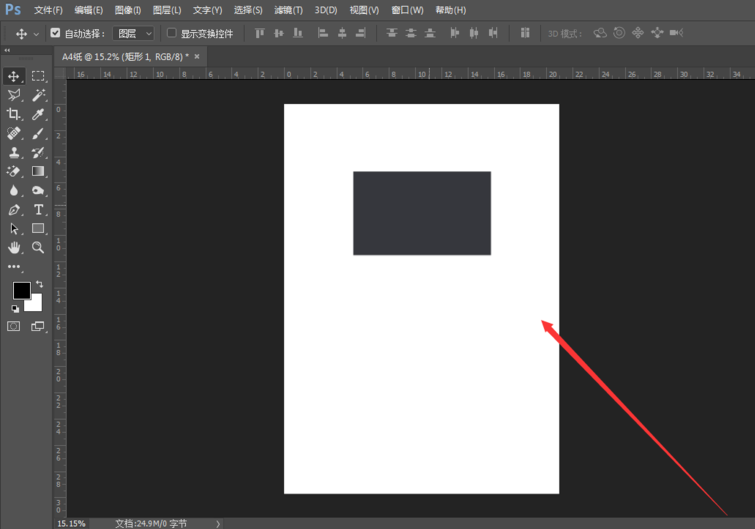 打开 PhotoShop 软件,在画布中绘制一个矩形(或其他图形均可)。