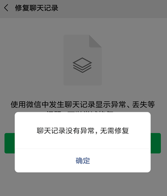 系统会自动修复出现异常的聊天记录,小编的聊天记录无异常、无丢失,所以无需修复。