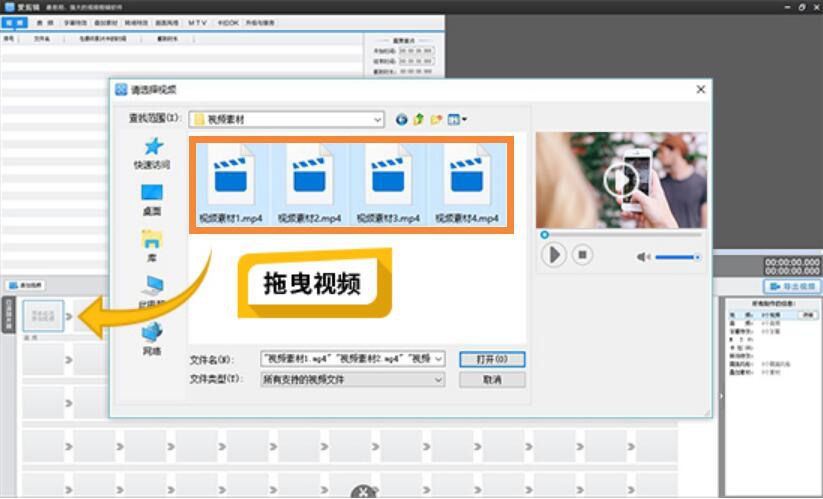 3. 然后,将需要合成一个视频的多个视频片段直接拖拽到爱剪辑的视频编辑区域。