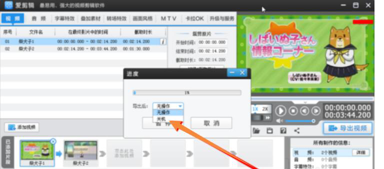 6. 随后,弹出视频合成的进度提示小窗口,用户可以选择视频导出后是否关机。