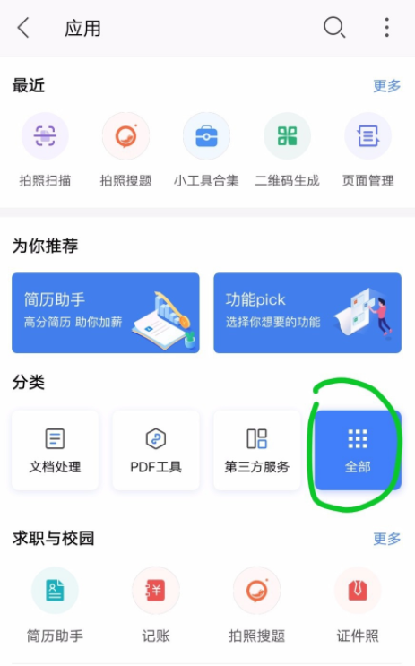 进入应用界面,如图,点击”分类”——”全部”,找到”第三方服务”——”二维码生成”功能,