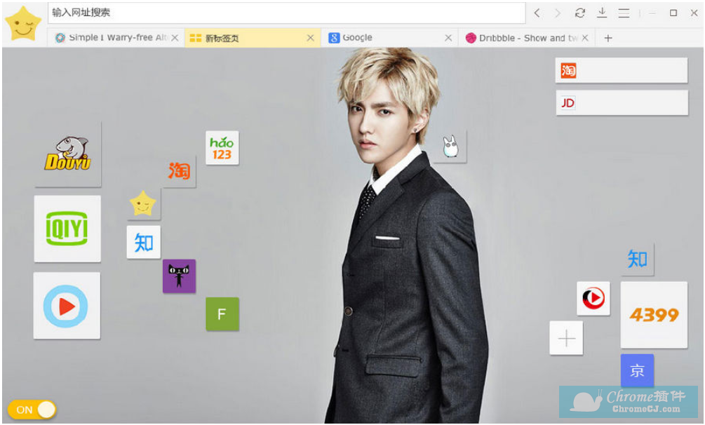 星愿浏览器怎么样?为什么那么受大学生们的喜爱?因为它除了上述的特色外,星愿浏览器还支持用户根据自己的喜好来定义浏览器的背景。如下图,可以用明星照片来作为浏览器背景。