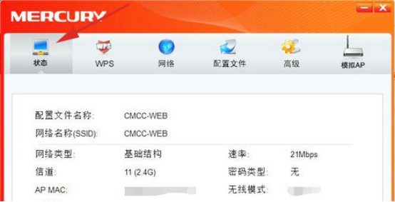 6. 用户将上述的 mercury 无线网卡驱动中的设置都完成后,点击“应用”按钮便可生效。最后,用户可以切换回“状态”项目,可以看到 mercury 无线网卡驱动可以正常使用了,使用电脑设备连接wifi即可。