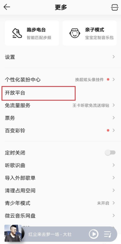 进入更多界面,如图,然后点击”开放平台”,