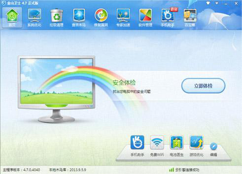 金山卫士是一款由金山网络技术有限公司出品的查杀木马能力强. 检测漏洞快. 体积小巧的免费安全杀毒软件。金山卫士采用金山领先的云安全技术,不仅能查杀上亿已知木马,还能 5 分钟内发现新木马;漏洞检测针对 windows 7 优化,速度更快;更有实时保护. 插件清理. 修复IE等功能,全面保护电脑的系统安全。