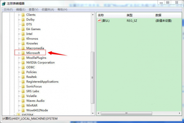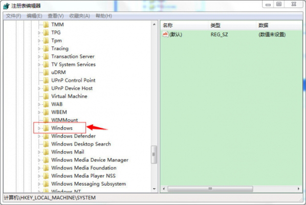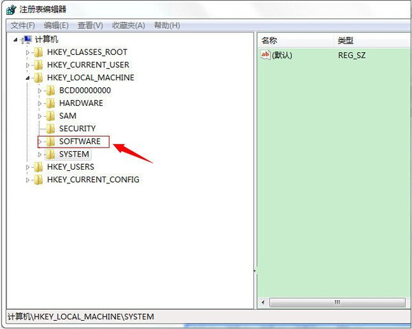 进入注册表界面,找到“HKEY_LOCAL_MACHINE”,根据下图指示,双击点开红色框内箭头所示的文件夹。