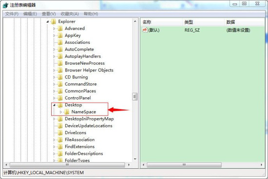 在显示的“DeskTop”文件夹中,点击打开红色框内的“NameSpace”文件夹,右边出现“默认”等。
