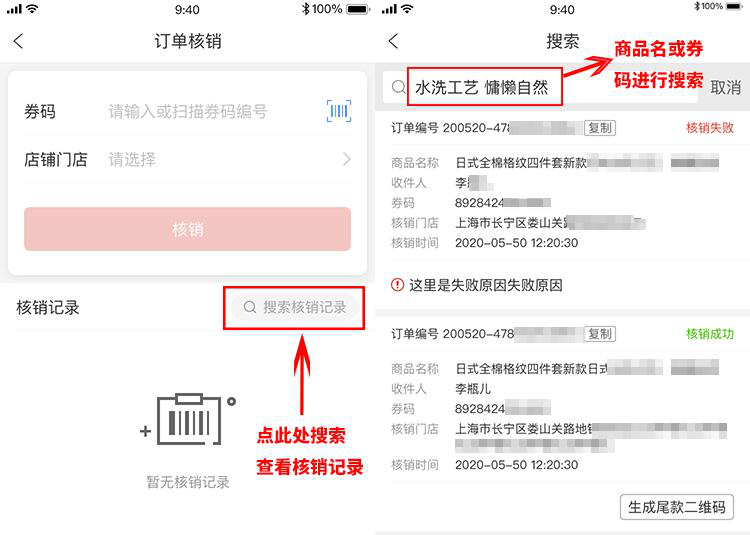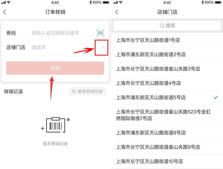 7. 最后,核销完成,用户还可以在核销记录中搜索核销记录,查看过往的核销情况。