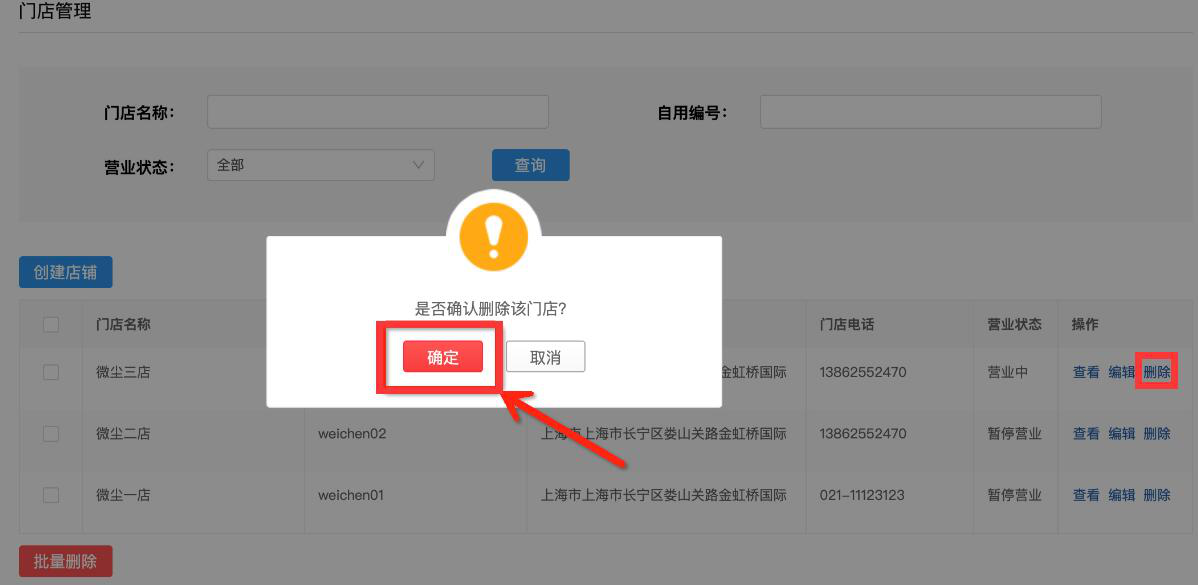 3. 在绑定自己门店的时候,也可以在门店列表中根据自己的需要来选择编辑或者删除,完成门店的绑定。