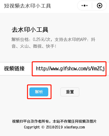 6. 进入小程序,粘贴链接,点击“解析”即可,