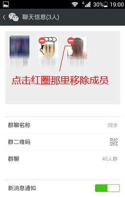 如图,微信群设置变化了,每个成员左上角多了个红色钮,群主没有,依次点击带红色钮的头像就可以移出成员了
