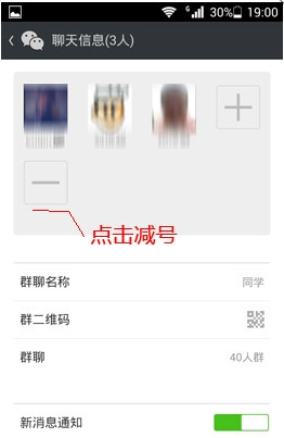 微信群设置打开,点击减号那里,注意如果看不到减号和加号,说明你是不是微信群主,不能解散微信群
