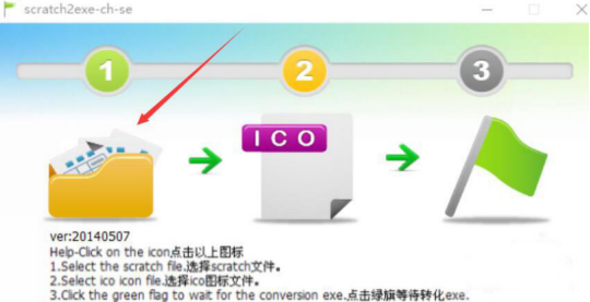 5. 安装完成后,将stratch2exe打开,我们先点击第①步。