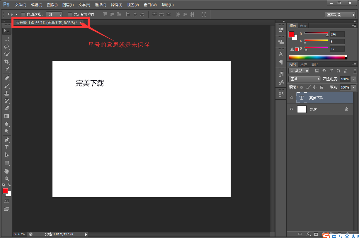 4. 可以看到新建的文档后面有个星号,这代表未保存。