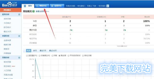 这样百度统计代码就安装完毕了。以后网站的统计信息就可以在报告中查看了。